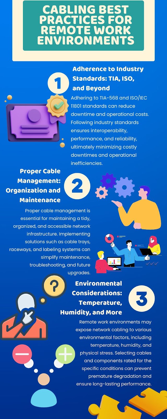 Some network performance issues stemming from cabling infrastructure problems, adhering to best practices in cabling for remote work environments is imperative.